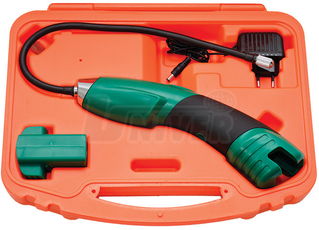 Elektronický přístroj je konstruován zejména pro zjišťování místa i nepatrného úniku chladicího prostředku R134a (příp. R12/R11/R500/R503/R22/R123/R124/R502/R404a/R410a, R407c atd.) ze systému klimatizace automobilu. Ohebná měřicí sonda na konci se snímačem umožňuje zjišťovat přítomnost uniklého chladicího prostředku na halogenové bázi i v obtížně přístupných místech. Nastavit lze celkem 7 stupňů citlivosti. I na nepatrnou koncentraci chladicího prostředku odpovídající úniku 3 g za rok reaguje přístroj změnou barev LED diod na panelu a zároveň akustickou změnou základního pípání. To usnadňuje postupné přibližování se k místu úniku. Měření a vyhledávání netěsnosti optimalizuje také automatické nulování a resetování tlačítkem upravujícím úroveň detekce uniklého chladiva.Praktickou součástí přístroje je indikace stavu snímače i indikátor napětí baterií se 3 LED (modrá=plné napětí, fialová=dostatečné napětí, červená=baterie nutno dobít). Potřebu výměny snímače signalizuje nestálý, proměnlivý výstražný zvuk.