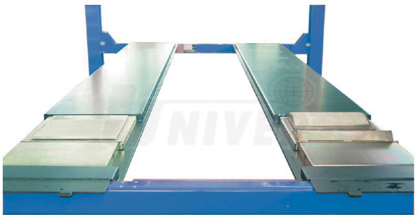 Elektrohydraulický přístroj pro zjišťování vůlí v zavěšení kol a řízení je určen pro instalaci na čtyřsloupové plošinové zvedáky a nůžkové zvedáky. Má dvě plošiny, které vykonávají dva různé pohyby, což umožňuje identifikaci vůlí v zavěšení kol i v řízení.Technické parametry: