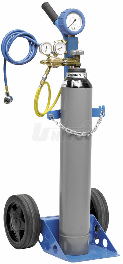 Klimatizační systém není nikdy dokonale těsný. Z hlediska ochrany životního prostředí je ovšem nezbytné zabránit většímu úniku chladiva z klimatizací a mít možnost zkontrolovat, zda je systém skutečně těsný. Jednou z metod je natlakování systému dusíkem. Taková kontrola těsnosti je rychlá a poměrně levná. Přístroj pro natlakování a kontrolu těsnosti výparníků klimatizace v zabudovaném stavu Waeco 8885400092 se skládá z vozíku pro umístění tlakové láhve s dusíkem a bloku tlakoměrů s odvzdušňovacím ventilem a bezpečnostními ventily (otevírací tlak 36 bar), dále z redukčního ventilu dusíku nastavitelného v rozsahu 0-35 bar, ze zkušebního tlakoměru 0-40 bar a ze servisní hadice pro nízkotlakou stranu délky 1,8 m.Tlaková láhev s dusíkem není součásti dodávky.