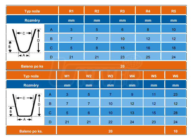 V základní výbavě přístroje je imbusový klíč na výměnu nožů a 10 vyřezávacích nožů.