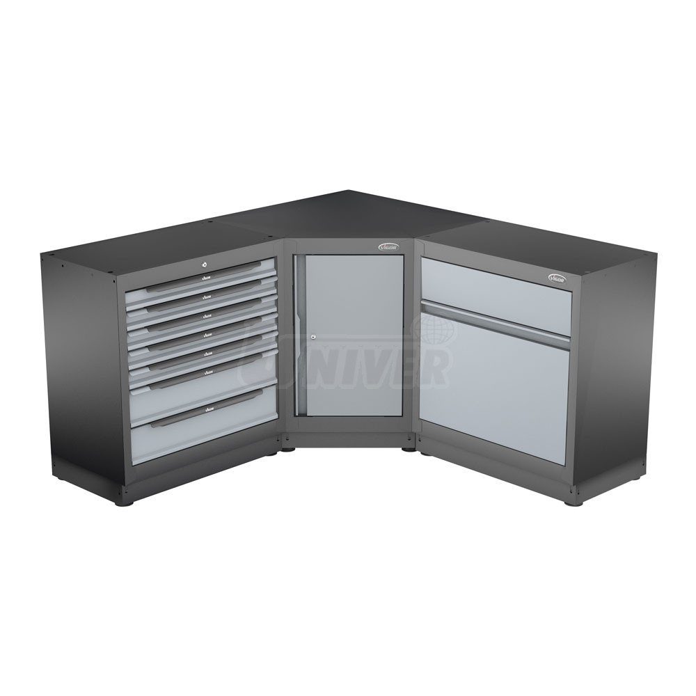 Celokovová dílenská skříň s jednokřídlovými dveřmi k rozšíření skříňové stěny VIGOR v rohu.- univerzální použití pro uložení nářadí, nástrojů, materiálu, vybraných součástek, dokumentace atd.