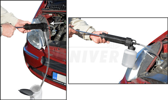Ruční odsávačka nekorozivních kapalin s odsáváním kapaliny do nádobky 1 l nebo po jejím odpojení hadičkou do jiné nádoby.- odsávání mnoha provozních kapalin motorových vozidel, zahradní mechanizace, lodí, strojů a zařízení atd., jako jsou voda, oleje, nemrznoucí chladicí kapaliny, brzdové kapaliny apod.