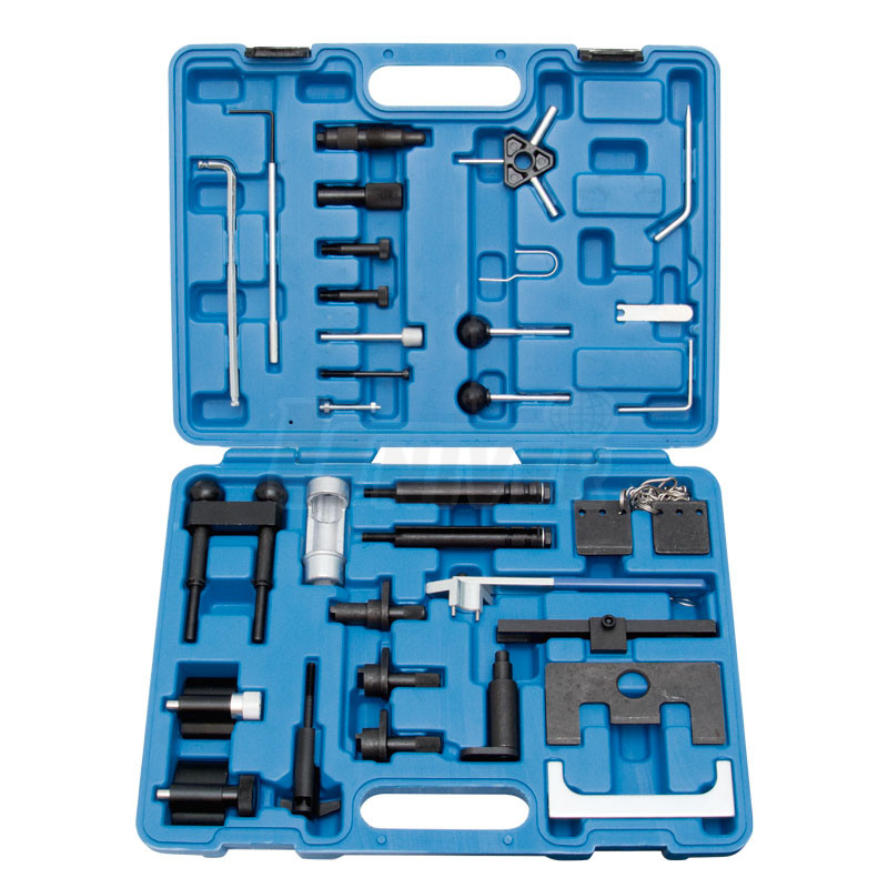 Sada aretačních přípravků je určena pro nastavování / časování rozvodů benzinových i naftových motorů vozů Volkswagen / Audi / Škoda / SEAT a využívá se také při výměnách rozvodových řemenů i dalších opravárenských úkonech.Použití