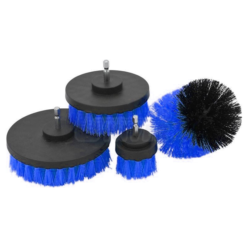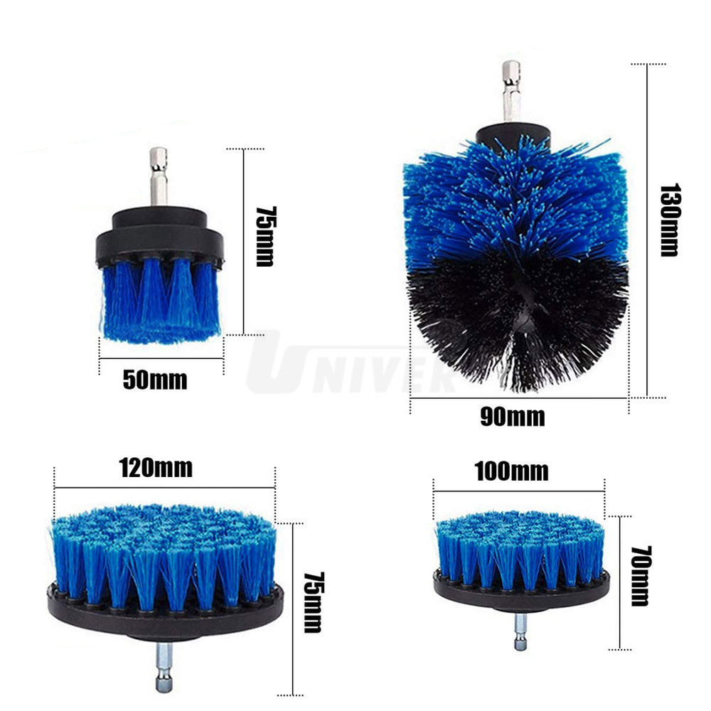 4-dílná sada kartáčů se štětinami z odolného plastu / PP pro upnutí do vrtačky.- dřík šestihran 1/4" pro upnutí do vrtačky nebo aku-šroubováku