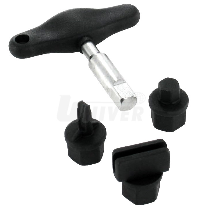 Sada klíčů na plastové výpustné šrouby olejových van vozů VW, Audi, Škoda, SEAT, Ford, BMW, Peugeot a Citroen.- materiál: tvrzená ocel pro vysoké namáhání