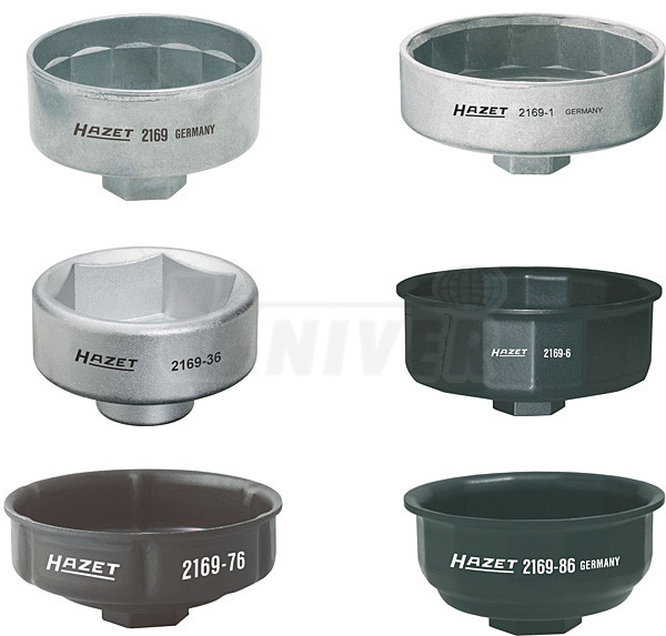 6-dílná sada miskových klíčů na olejové filtry obsahuje 6 rozměrů těchto klíčů.Všechny mají speciální povrchovou úpravu. Používají se v kombinaci s klíčem/ráčnou se čtyřhranem 3/8" nebo 1/2". Aby bylo možné dodržet výrobcem předepsané utahovací momenty, doporučuje se důsledné používání momentových klíčů, např. HAZET 6110-1 CT (3/8") a HAZET 6121-1 CT (1/2").