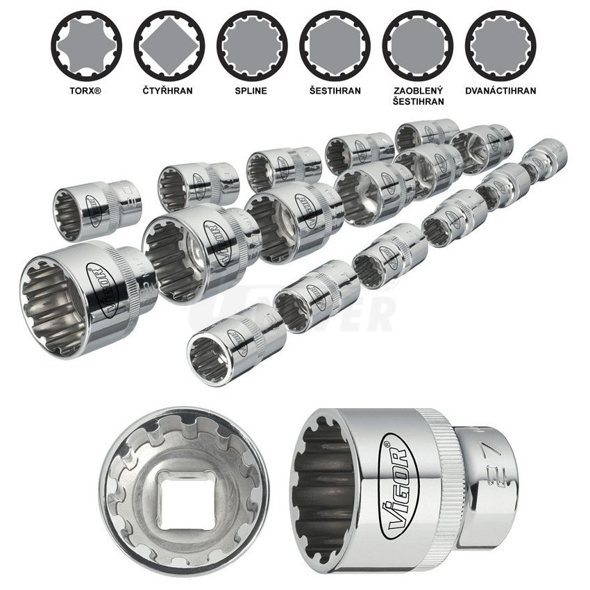 Sada multiprofilových nástrčných hlavic VIGOR V1898