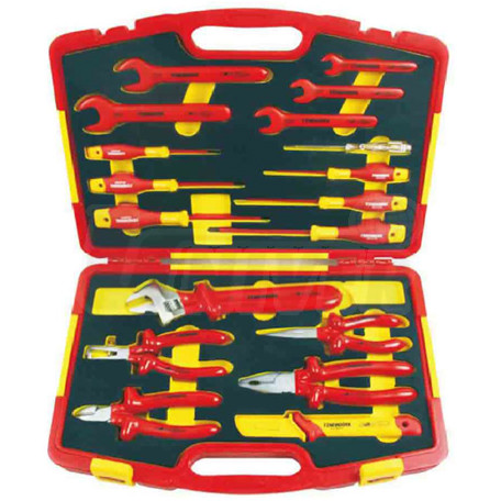 18-dílná sada nářadí v plastovém kufříku s komponenty izolovanými až do 1000 V.- veškeré nářadí umožňuje bezpečnou práci až do napětí 1000 V podle normy DIN EN 60900 AC/1000 V