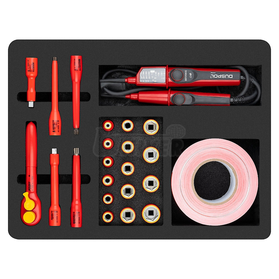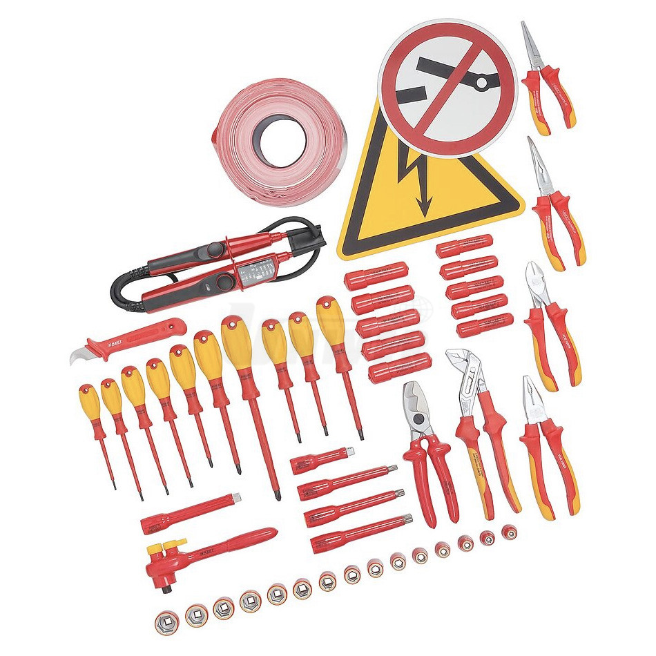 52-dílná sada nářadí 3/8" s VDE izolací (do 1000 V) v pojízdném kufru pro veškeré práce na vysokonapěťových systémech.- izolované nářadí v souladu s normou IEC 60900:2018 / ČSN EN IEC 60900 ED.4 (359704)