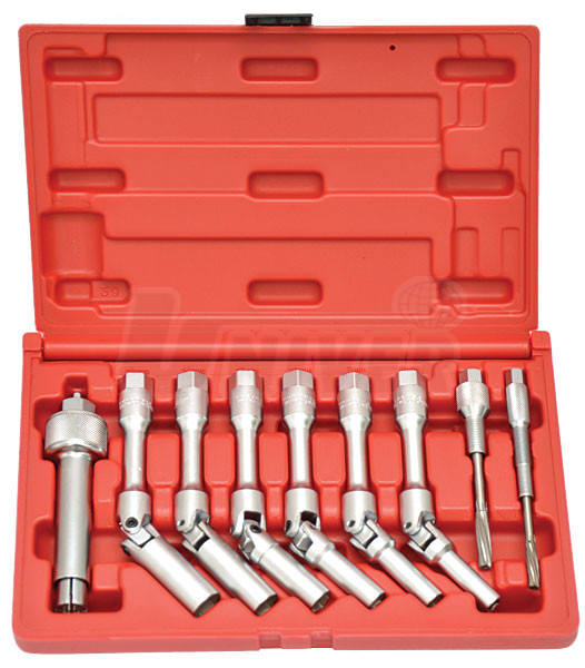 Sada nástavců pro montáž žhavicích svíček obsahuje 6 kloubových nástavců 3/8" s hlavicemi 8 mm, 9 mm, 10 mm, 12 mm, 14 mm a 16 mm a rovněž 2 výstružníky pro čištění/vystružení otvoru mezi žhavicí svíčkou a spalovací komorou.Objednávka zboží