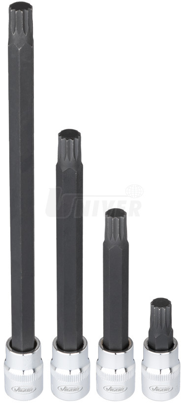 26-dílná sada nástrčných hlavic 3/8" s kovanými hroty vnitřního profilu SPLINE (XZN) M5 až M16.- 4 různé délky 48 / 93 / 133 / 193 mm