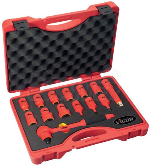 14-dílná sada nástrčných klíčů VDE pro elektrikáře je vyrobena z chrom-vanadia. Jednotlivé součásti sady jsou odizolované. Všechny klíče umožňují bezpečnou práci až do napětí 1000 V (dle normy DIN EN 60900) a jsou uloženy v praktickém plastovém kufříku.Sada obsahuje: