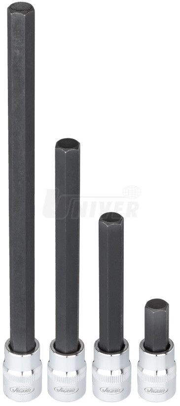 30-dílná sada nástrčných hlavic 3/8" s kovanými hroty vnitřního profilu šestihran / imbus 5 až 14 mm.- 4 různé délky 48 / 93 / 133 / 193 mm