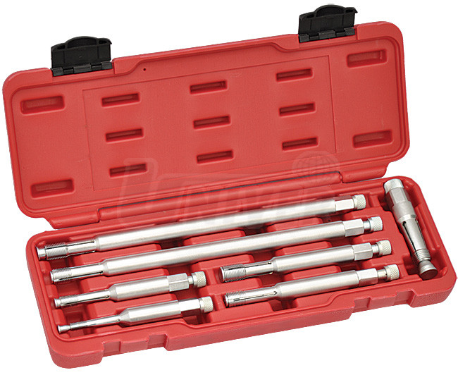 7-dílná sada pro čištění a obnovení závitů různých zapalovacích svíček. Je konstruována tak, aby se znemožnilo nebo na maximum zredukovalo spadnutí nečistot nebo kovových špon do spalovacího prostoru motoru. Operace probíhá zevnitř směrem ven. Délka adaptéru 260 mm umožňuje provádět popsané úkony i u značně hluboko uložených zapalovacích svíček.Sada obsahuje základní komponenty: