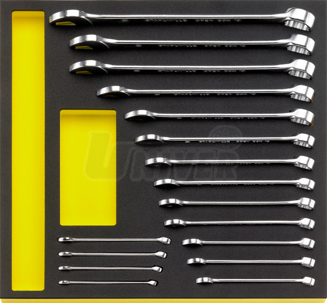 - klíče jsou uloženy v praktické plastové platformě TC (Tool Control System), takže lze sadu snadno přenášet i zavěsit, rozměry 350 x 350 x 60 mm