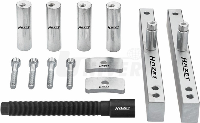 4798-12/13 Sada (13-dílná) adaptérů vstřikovačů RENAULT, rozšiřuje sadu HAZET 4798-5/25, zajišťuje rovnou dosedací plochu pro nástroje na vstřikovače k provedení optimálního procesu demontáže vstřikovačů, pro motory Renault 2.0 dCi M9R s piezoelektrickými vstřikovači, speciální podpěrné traverzy a tažné vřeteno