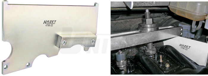 4798-22 Adaptérová deska Renault, boční montáž desky na motor zajistí rovnou dosedací plochu pro sadu HAZET 4798-5/25, pro vozy Renault, Opel, Nissan 2.2→2.5 dCi / kód motoru G9T, G9U