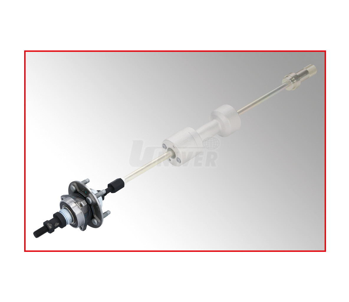 9-dílná sada přípravků pro demontáž kolových ložisek Ø 24 – 72 mm přímo na automobilu.