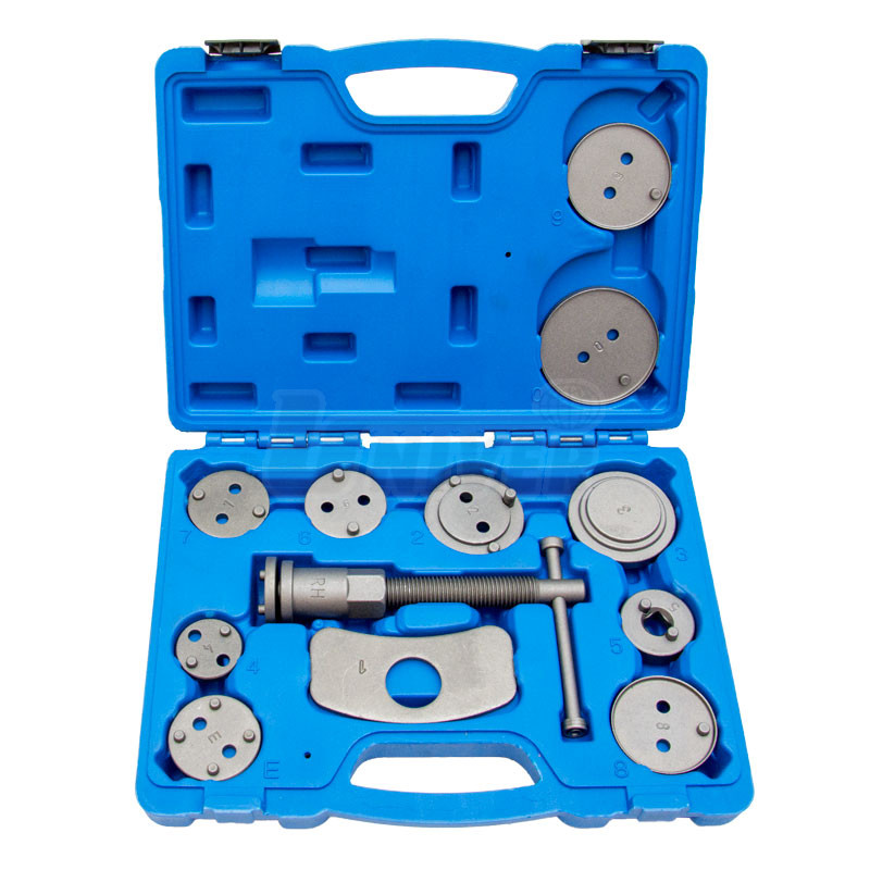 Univerzální sada v plastovém kufříku slouží pro montáž a zpětné vracení pístků třmenu kotoučových brzd.Obsahuje 1 šroubový přípravek (pravotočivý závit), 1 doraz a 10 adaptérů.