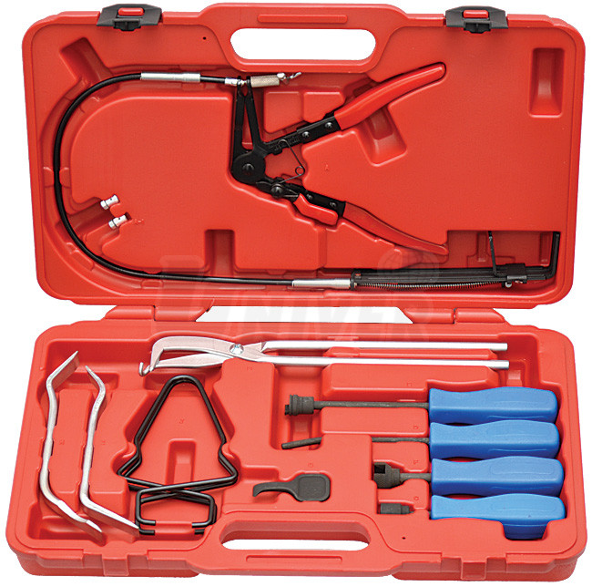 10-dílná sada pro servis čelisťových brzd obsahuje 3 různé lžíce na seřizování čelisťových brzd, 5 přípravků pro servis pružin čelisťových brzd, speciální kleště pro snadnou demontáž/výměnu vratných pružin čelisťových brzd, kleště pro rozpínání brzdových válečků a svěrku na brzdové pístky.Objednávka zboží