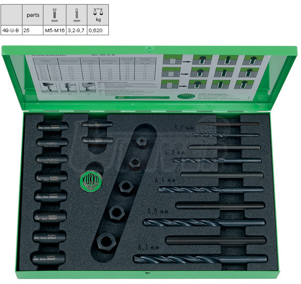 Sada pro vyšroubování ulomených šroubů a čepů KUKKO 49-U-B
