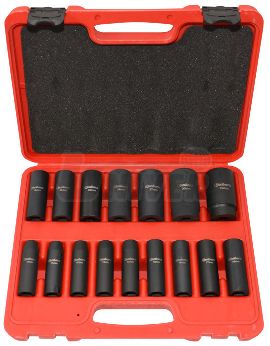 Sada kvalitních šestihranných kovaných hlavic 1/2" (16 ks 10-32 mm) prodloužených z chrom-molybdenové speciální oceli uložených v plastovém kufru.- materiál: kovaná, vysoce kvalitní chrom-molybdenová ocel
