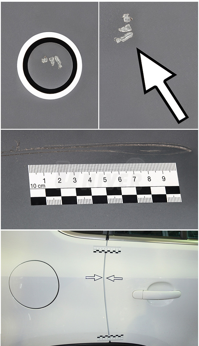 Sada samolepek pro označování poškození karosérií obsahuje vždy 2 šipky, 1 kroužek a 1 pravítko a dodává se v roli s 50 kusy samolepek.- sada samolepek k označování míst, kde došlo k poškození karosérií