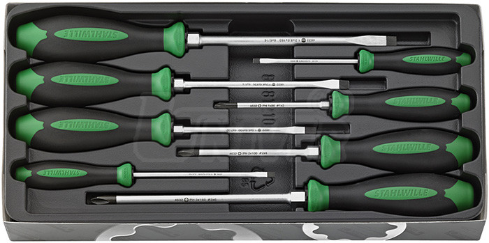 8-dílná sada profesionálních plochých a křížových šroubováků.- nejvyšší kvalita garantovaná renomovanou značkou Stahlwille, vyrobeno v Německu