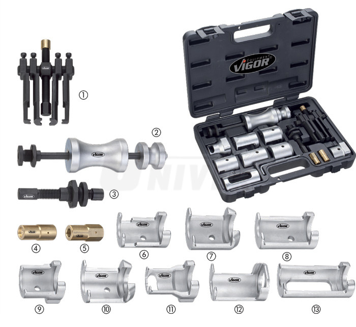 Univerzální sada (14-dílná) přípravků pro demontáž/stahování ramínek stěračů v plastovém kufříku.- univerzální použití pro demontáž ramínek stěračů řady osobních i nákladních automobilů, např. značek Volkswagen, Škoda, Audi, SEAT, BMW, Citroën, Fiat, Ford, Honda, Mercedes-Benz, Opel, Peugeot, Renault, Saab, Volvo atd.