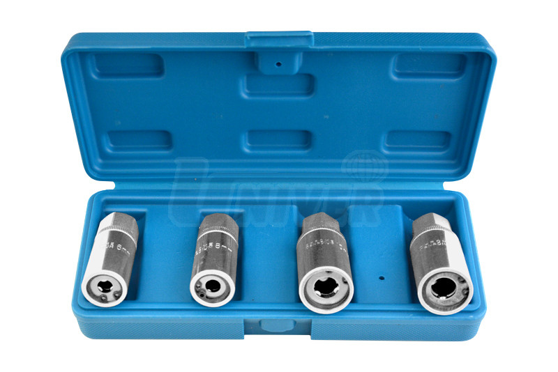 Sada 4 vytahováků závrtných šroubů (tzv. šteftů) a svorníků v praktickém plastovém kufříku.- sada 4 speciálních přípravků používaných zejména pro vytahování závrtných šroubů (tzv. šteftů)