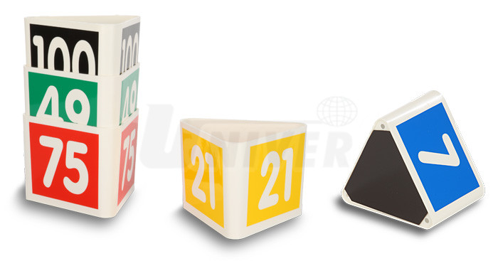 - trojúhelníkové nosiče číselného označení mají z jakéhokoliv úhlu pohledu dobře viditelná čísla na všech třech bočních stranách