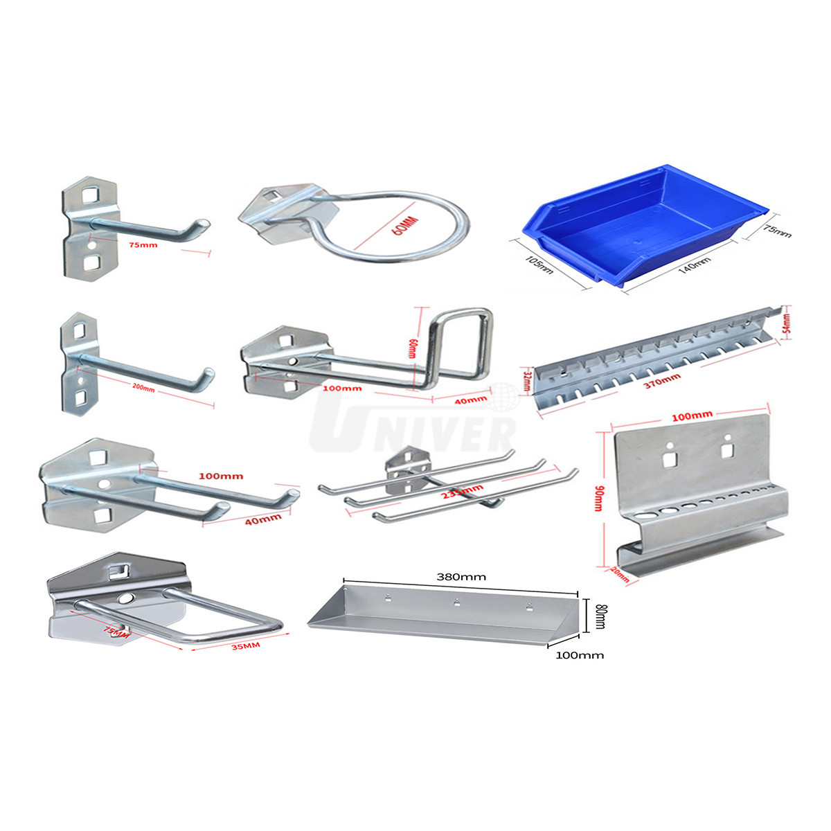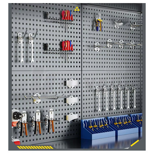 - na děrované zadní / stěnové desky lze nasadit různé háčky, držáky, případně úložné boxy, police, magnetické příslušenství atd.