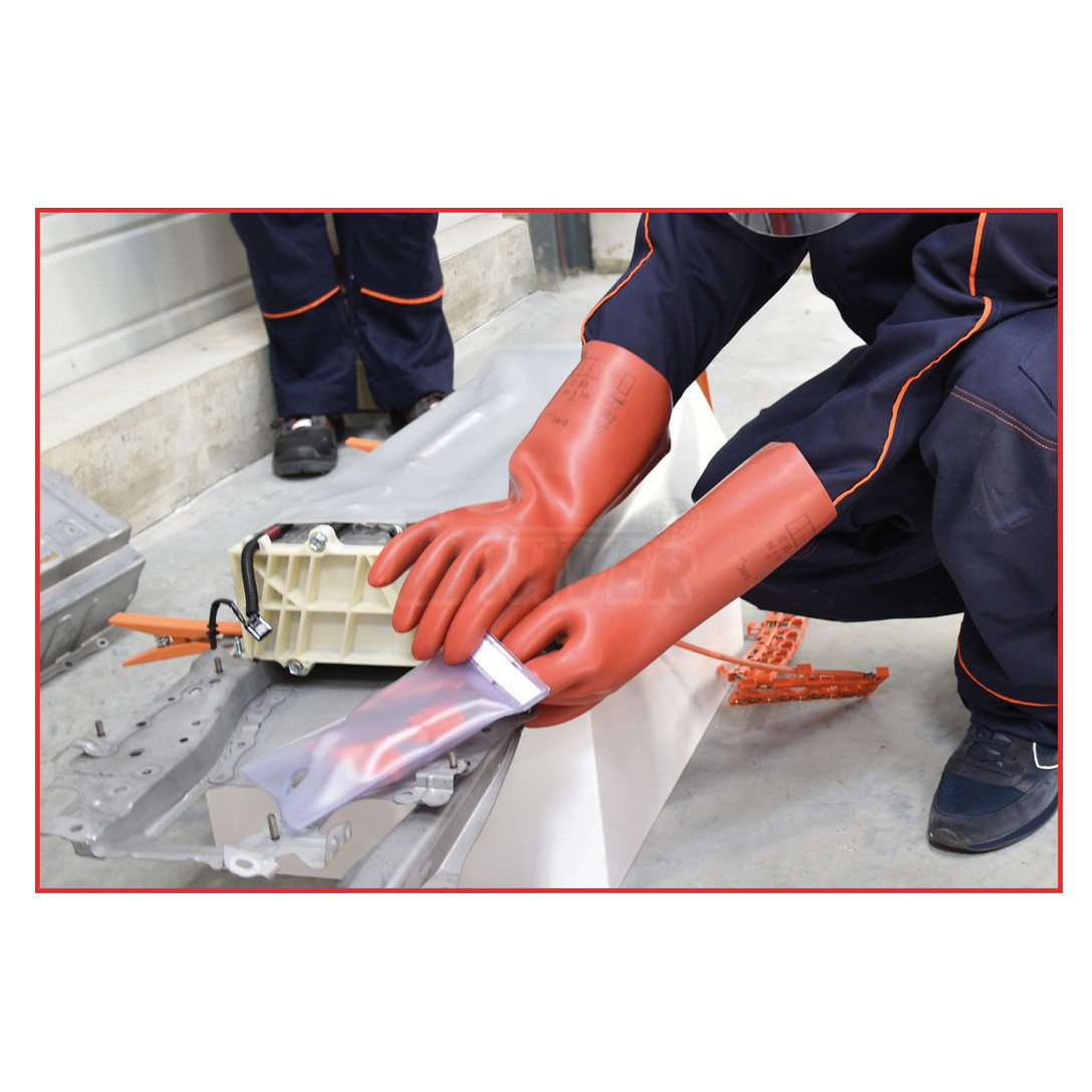 Dielektrické latexové ochranné rukavice s mechanickou a tepelnou ochranou.- dielektrické / nevodivé latexové rukavice