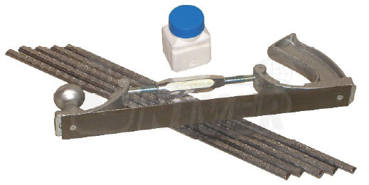 Souprava s cínovou pájkou bez olova a karosářským pilníkem pro kvalitní opravy karosérií automobilů.- souprava umožňuje opravy karosérií cínováním, kterým se vyrovnávají nerovnosti, tvarují hrany, zarovnávají spoje atd. před následným lakováním