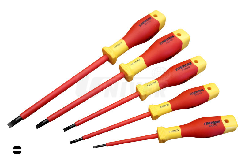 Ploché šroubováky různých velikostí klasifikace VDE izolované až do 1000 V.- umožňují bezpečnou práci až do napětí 1000 V podle normy DIN EN 60900 AC/1000 V