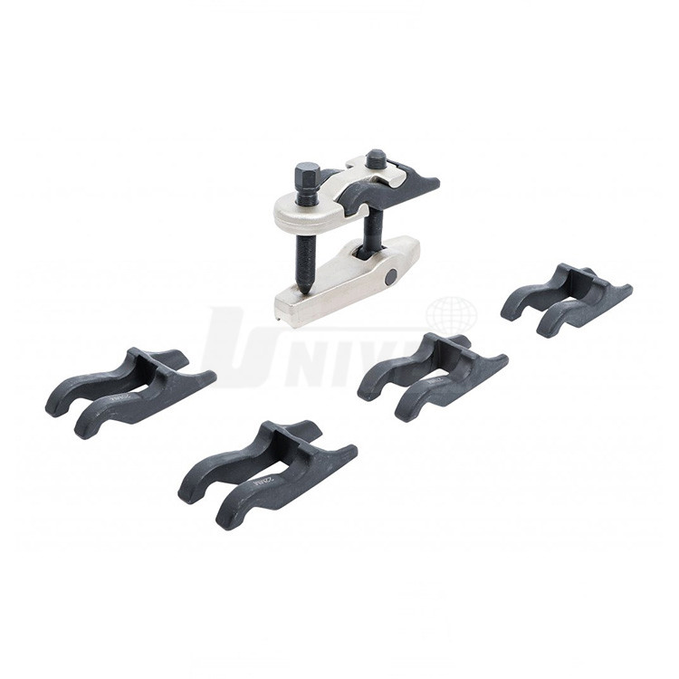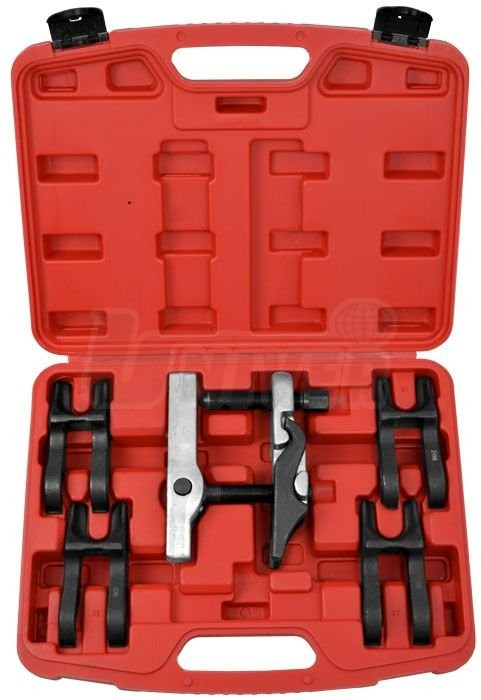 7-dílná sada stahováků kulových čepů různých velikostí je koncipovaná na bázi výměnných vidlic.- sada stahováků kulových čepů s vyměnitelnými vidlicemi pro stahování kulových čepů osobních i užitkových automobilů, zemědělských strojů atd.
