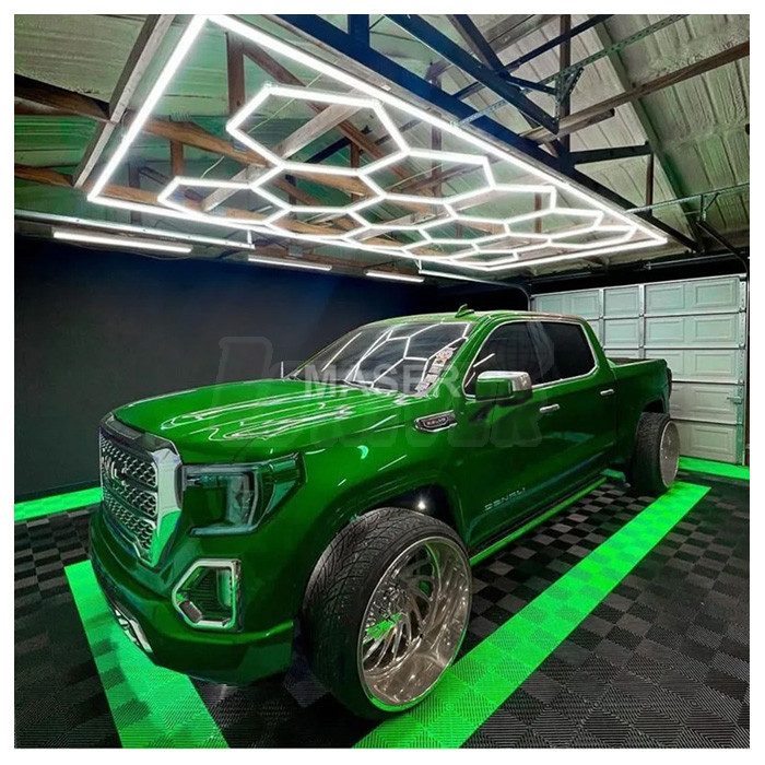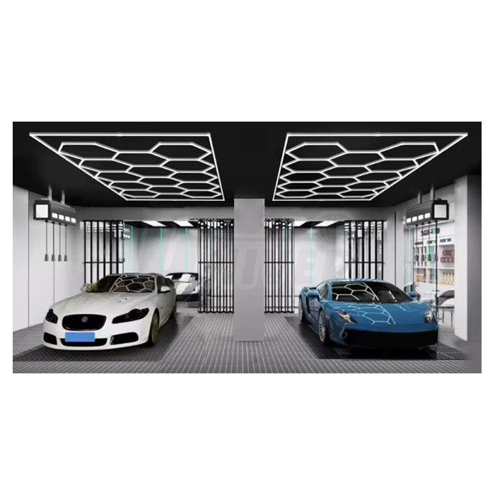 Moderní stropní LED osvětlení s vysokým světelným výkonem a plynulým stmíváním k ideálnímu osvícení autosalonů, servisních dílen apod.- šestiúhelníkový LED systém s designovou strukturou včelí plástve