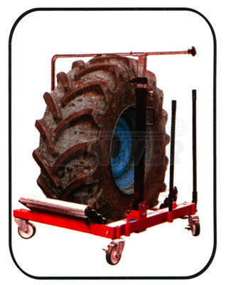 Transportní a montážní zvedák pro kola zemědělských a stavebních strojů se používá pro snadnou a bezpečnou montáž, demontáž a převážení extrémně velkých kol zejména zemědělských a stavebních strojů v rozsahu průměrů kol od 1000 mm až do 2200 mm a šířky kol až do 800 mm.Jedná se o speciální zvedák s podvozkovou částí se 4 natáčecími kolečky (dvě mají brzdy), s na obou stranách šířkově a hloubkově nastavitelnými nosnými rameny opatřenými vždy 4 válečky pro snadný nájezd a natočení přepravovaného kola do požadované pozice. Silné, nastavitelné opěrné rameno drží kolo ve svislé poloze a pojíždění s ním je bezpečné. Konstrukce zvedáku umožňuje snadný přístup ke kolovým šroubům/maticím.