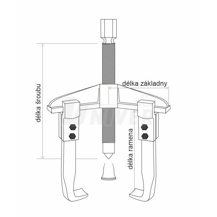 Univerzální stahováky se třemi posuvnými, zápustkově kovanými, pozinkovanými rameny z vysokouhlíkové oceli a středovým šroubem.- pro stahování kuličkových ložisek, kotoučů, ozubených kol, řemenic apod.