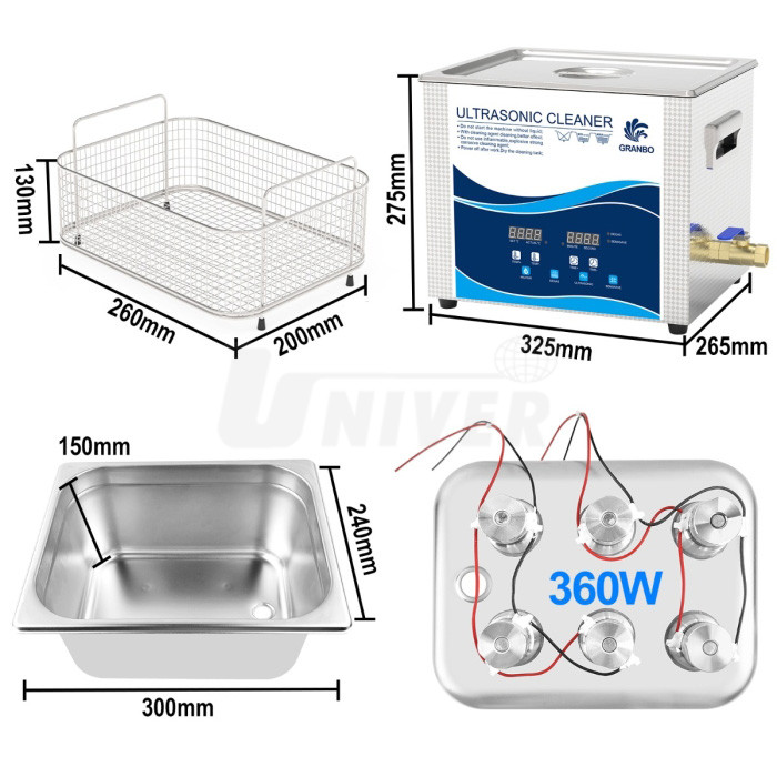 Digitální ultrazvuková čistička s objemem 10 l slouží k vysoce kvalitnímu, efektivnímu, rychlému, a navíc velmi šetrnému čištění nejrůznějších předmětů.- v řadě případů je ultrazvukové čištění jediný způsob, jak efektivní čištění nebo odmašťování provést. a to bez předchozího kartáčování nebo podobné metody s možným mechanickým poškozením čištěných povrchů