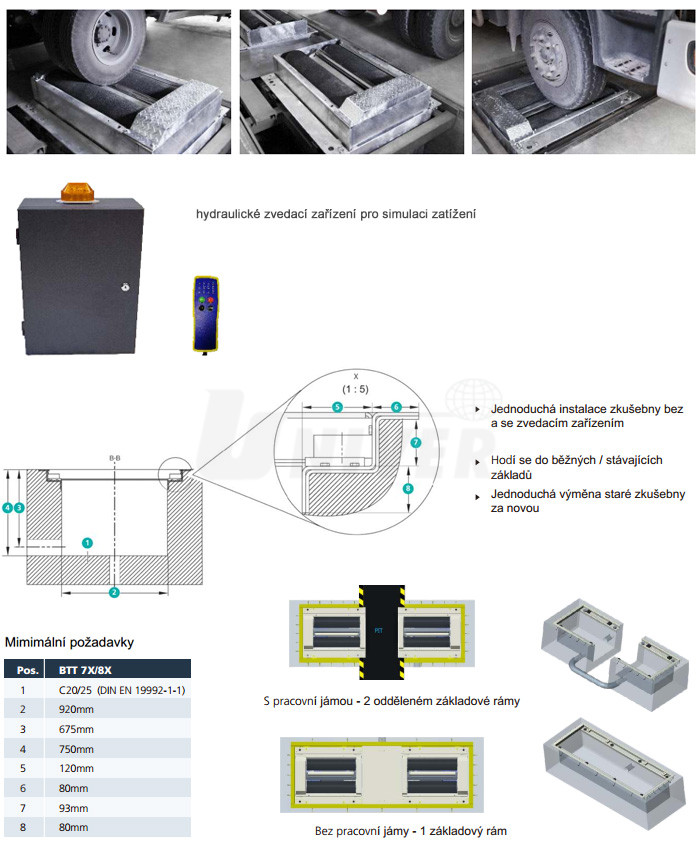 - zkušebnu lze instalovat jak na volné podlaze, tak nad montážní jámou