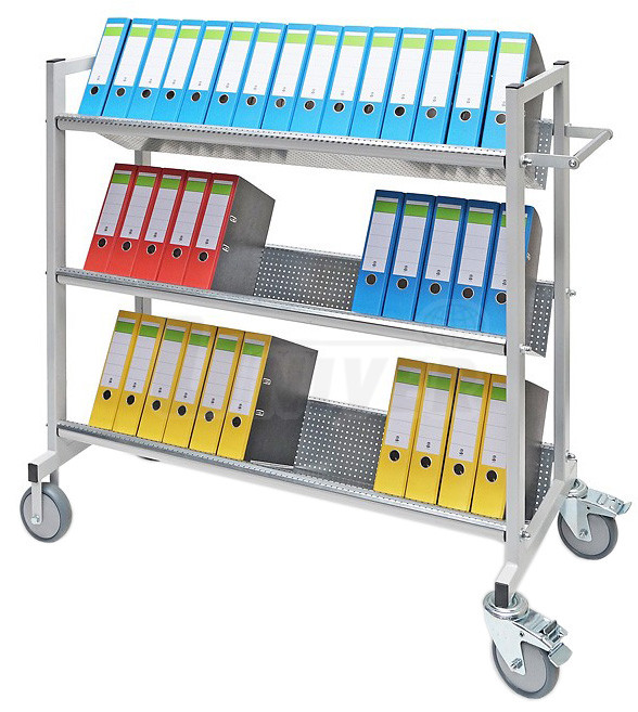 Kancelářský / skladový vozík k uložení a přepravě až 45 pořadačů ve 3 úrovních.- praktický, elegantní kancelářský / skladový vozík pro uložení a přepravu až 45 pořadačů