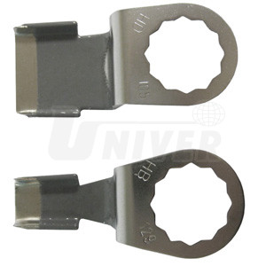 Sada 2 vyřezávacích škrabkových nožů pro vyřezávání lepených skel automobilů elektrickými nebo pneumatickými nástroji.- vyřezávací nože škrabkové