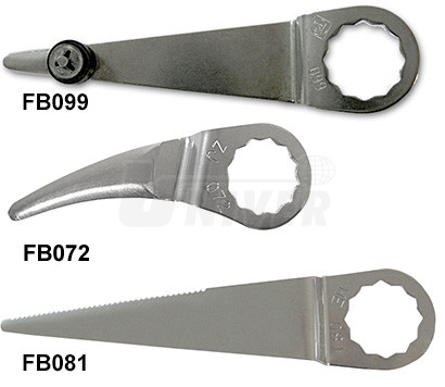 Kvalitní vyřezávací nože zahnuté se používají v kombinaci s pneumatickými nebo elektrickými přístroji pro vyřezávání lepených skel automobilů.