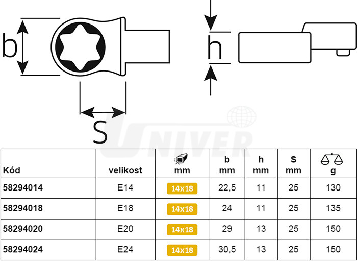 Klíče TORX k momentovým klíčům se zástrčným čtyřhranem podle DIN 3120.