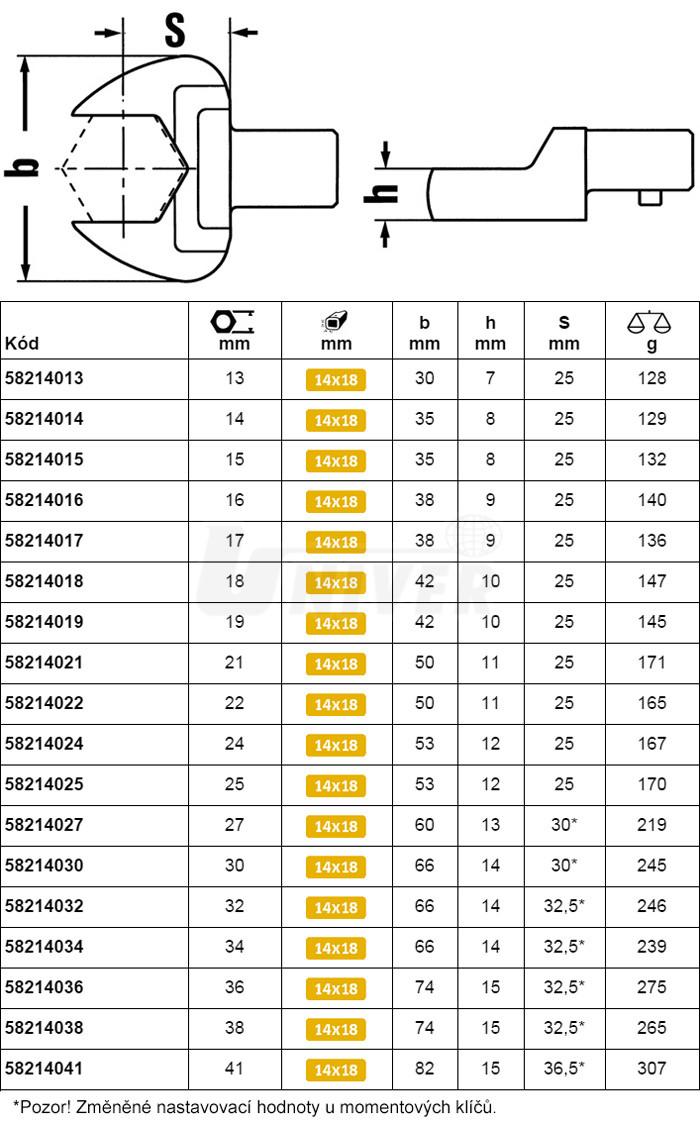 Otevřené klíče k momentovým klíčům se zástrčným čtyřhranem podle DIN 3120.