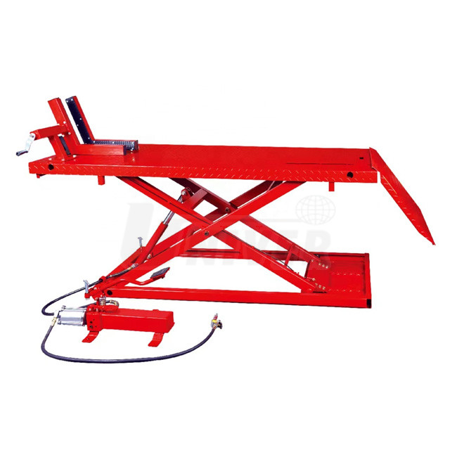 Pneumaticko-hydraulický zvedák (nosnost 680 kg) s rozměrnou plošinou, s nůžkovou zvedací konstrukcí a snadným ovládáním.- pro motocykly, čtyřkolky a zemědělskou mechanizaci
