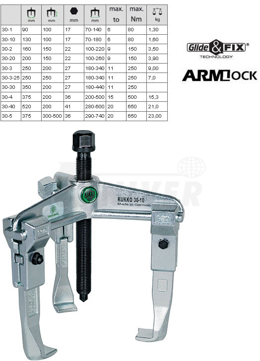 3-ramenné stahováky s posuvnými háky německé firmy KUKKO-Werkzeugfabrik patří do nejvyšší kvalitativní třídy v Evropě.Vlastnosti: