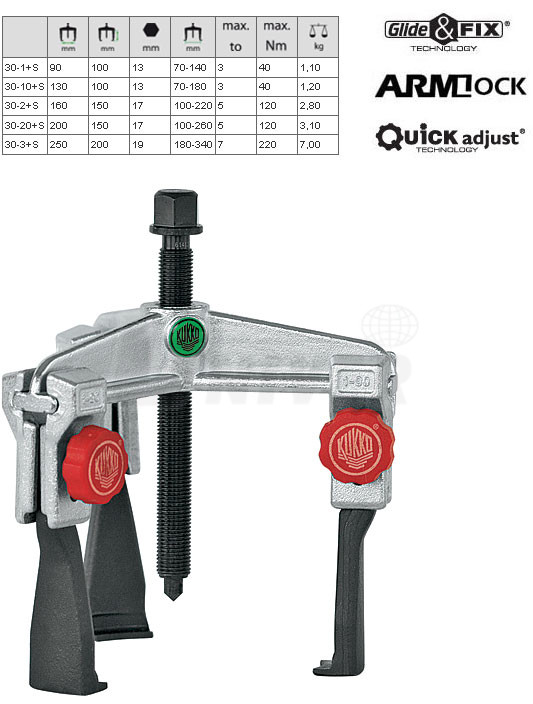 3-ramenné stahováky s posuvnými háky pro úzké prostory německé firmy KUKKO-Werkzeugfabrik patří do nejvyšší kvalitativní třídy v Evropě.Vlastnosti: