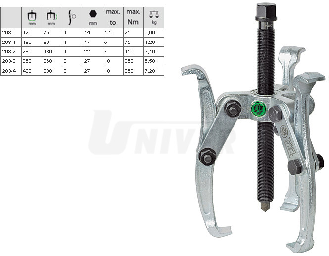 - robustní univerzální provedení pro stahování řemenic, ozubených kol, kuličkových ložisek a podobných dílů.